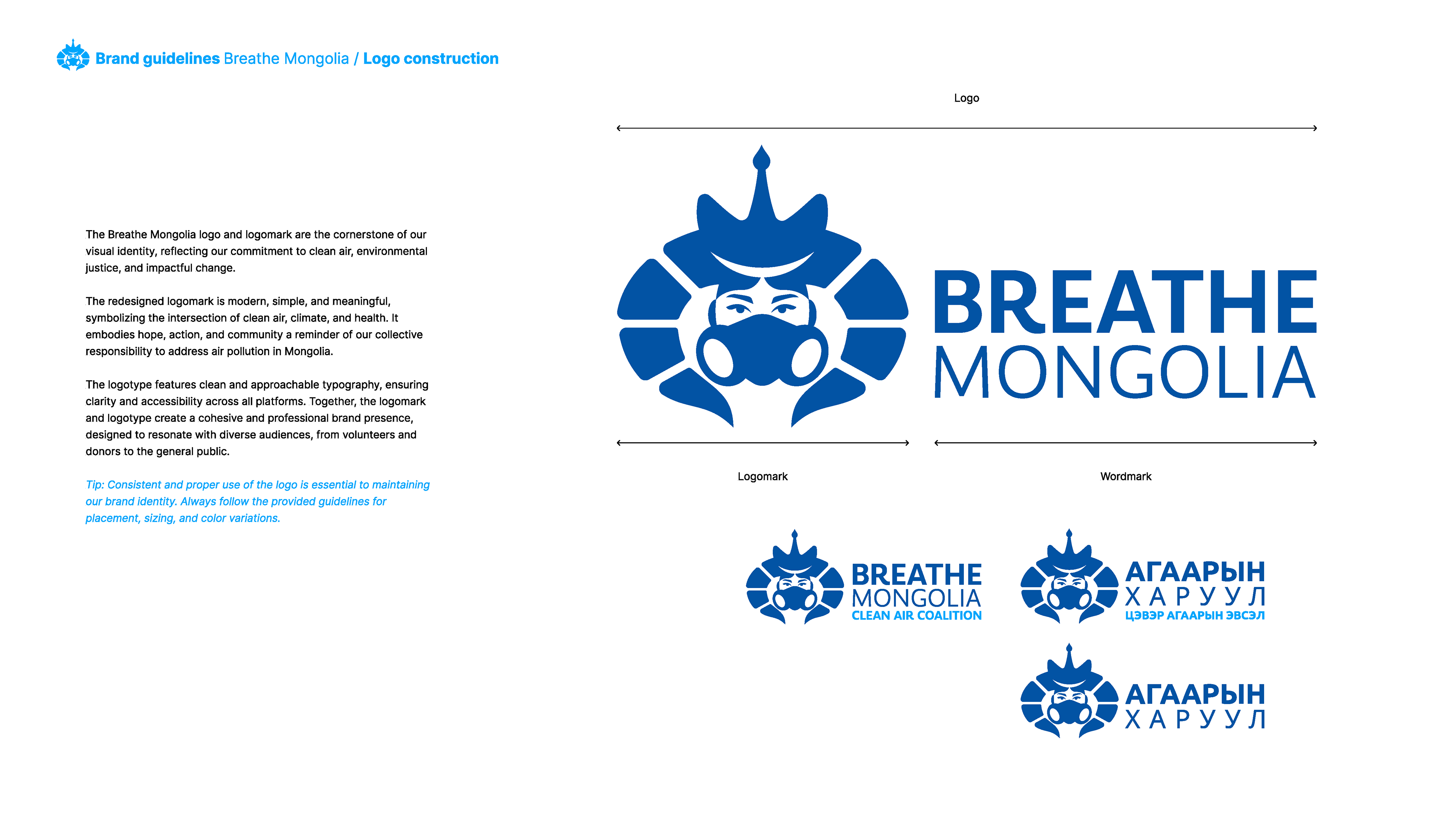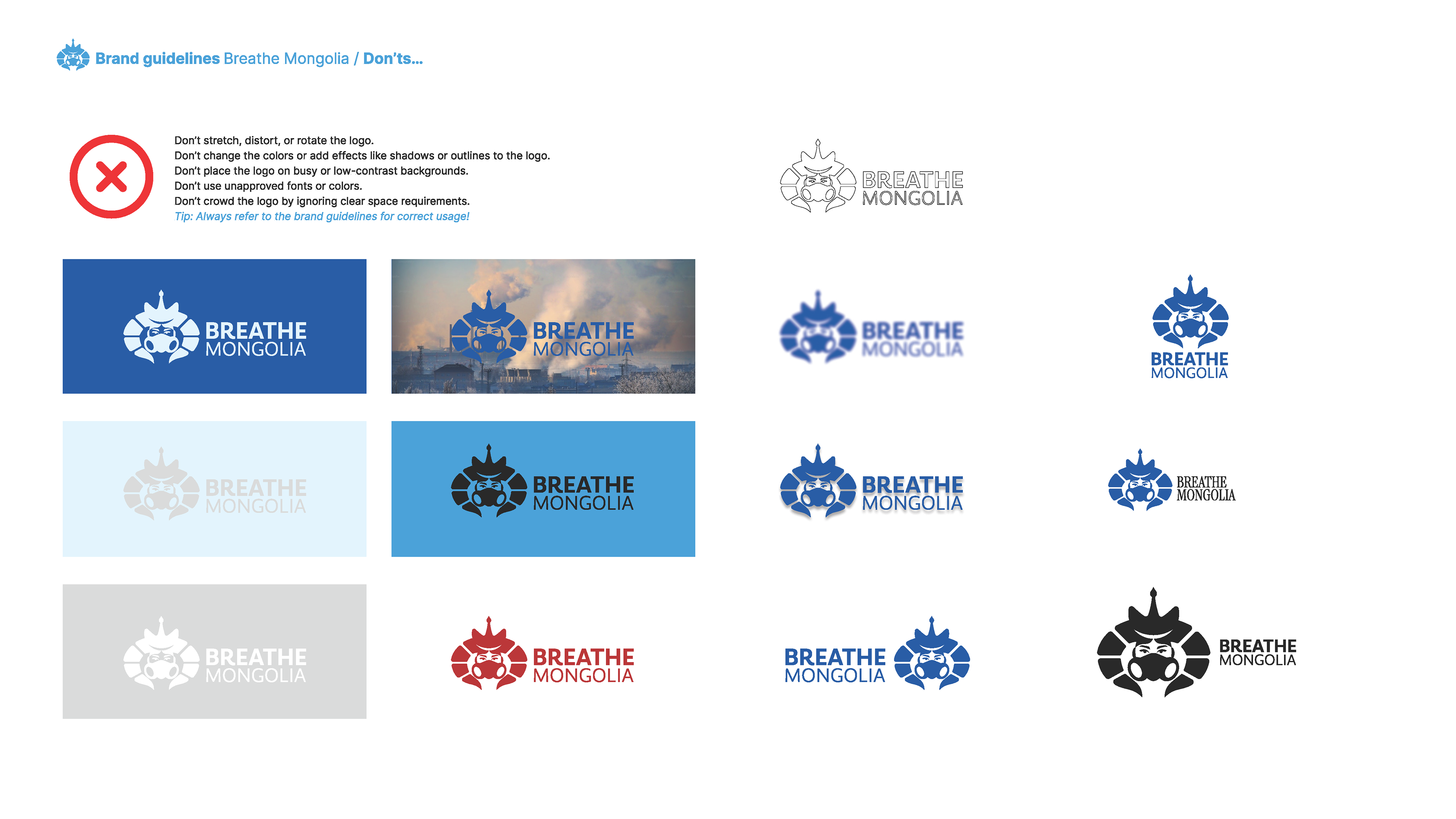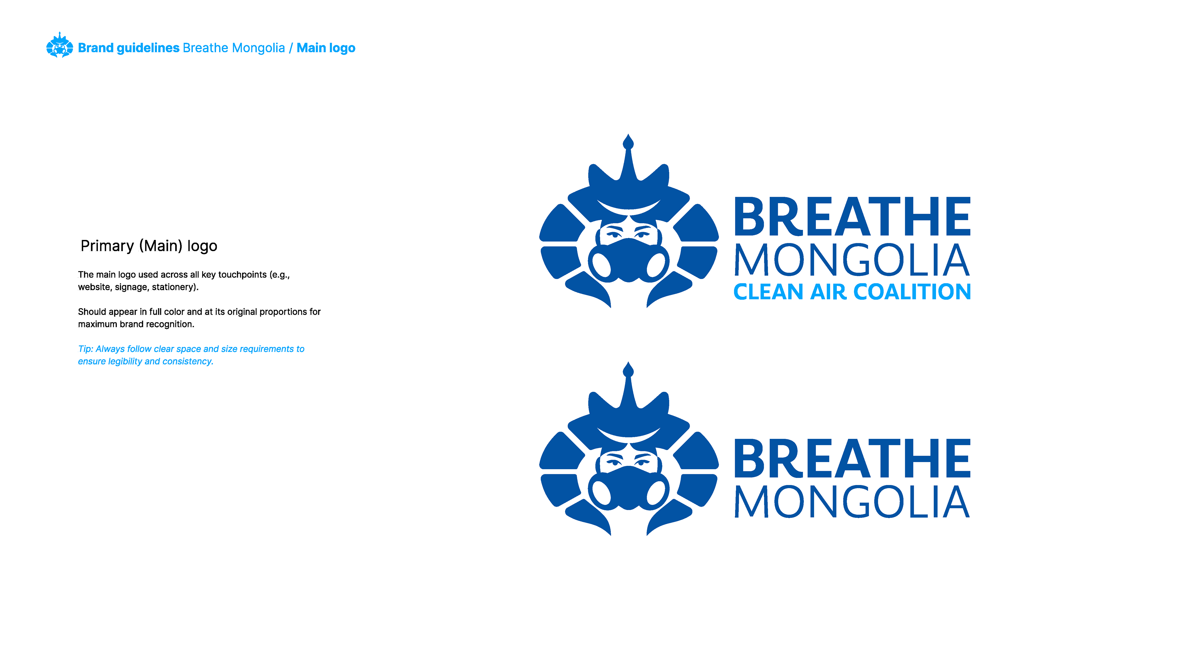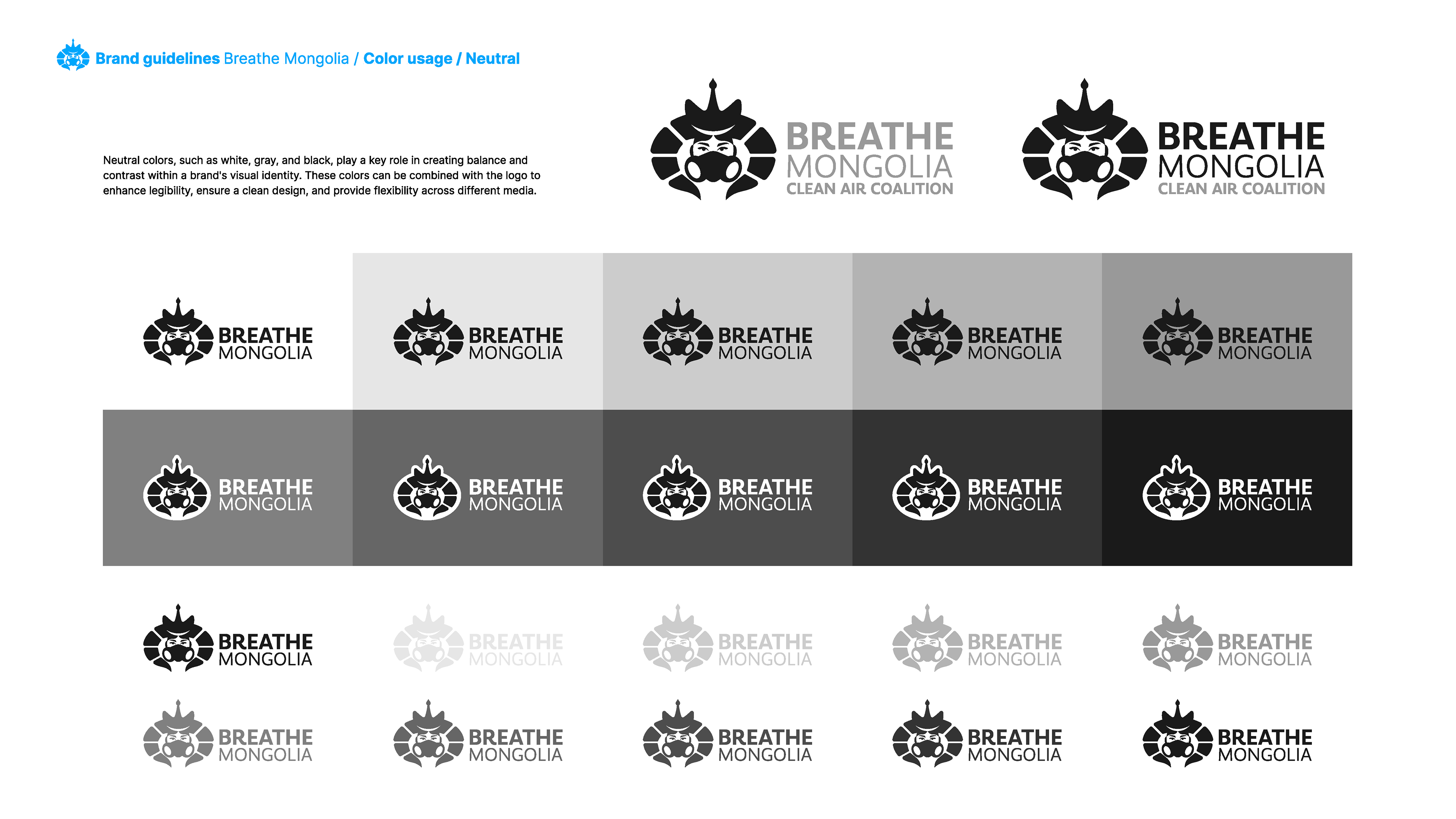 Breathe Mongolia – Clean Air Coalition is a nonprofit organization dedicated to eradicating air pollution in Mongolia through awareness, policy transformation, and community engagement. This brand guideline project focuses on establishing a strong, modern, and cohesive visual identity that reflects the organization’s mission, values, and impact.
