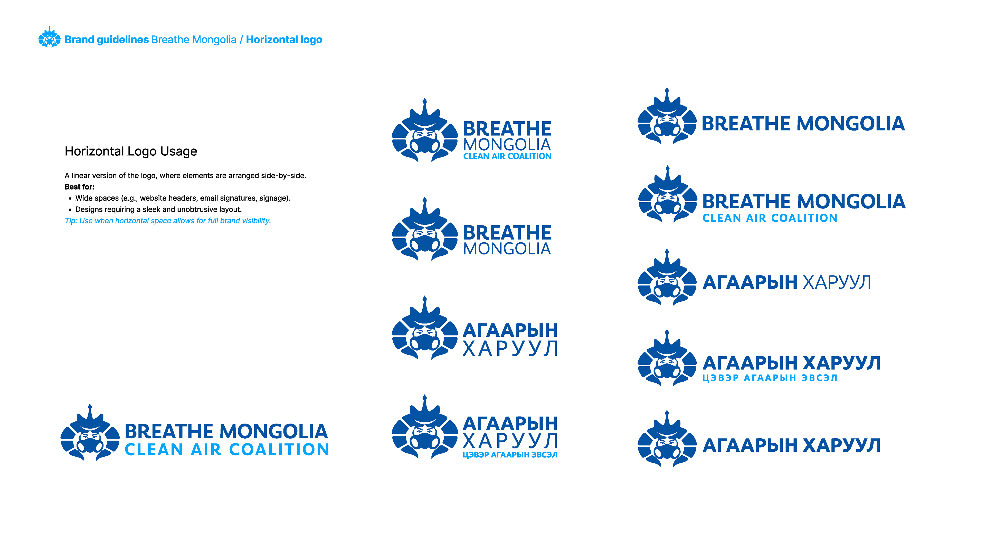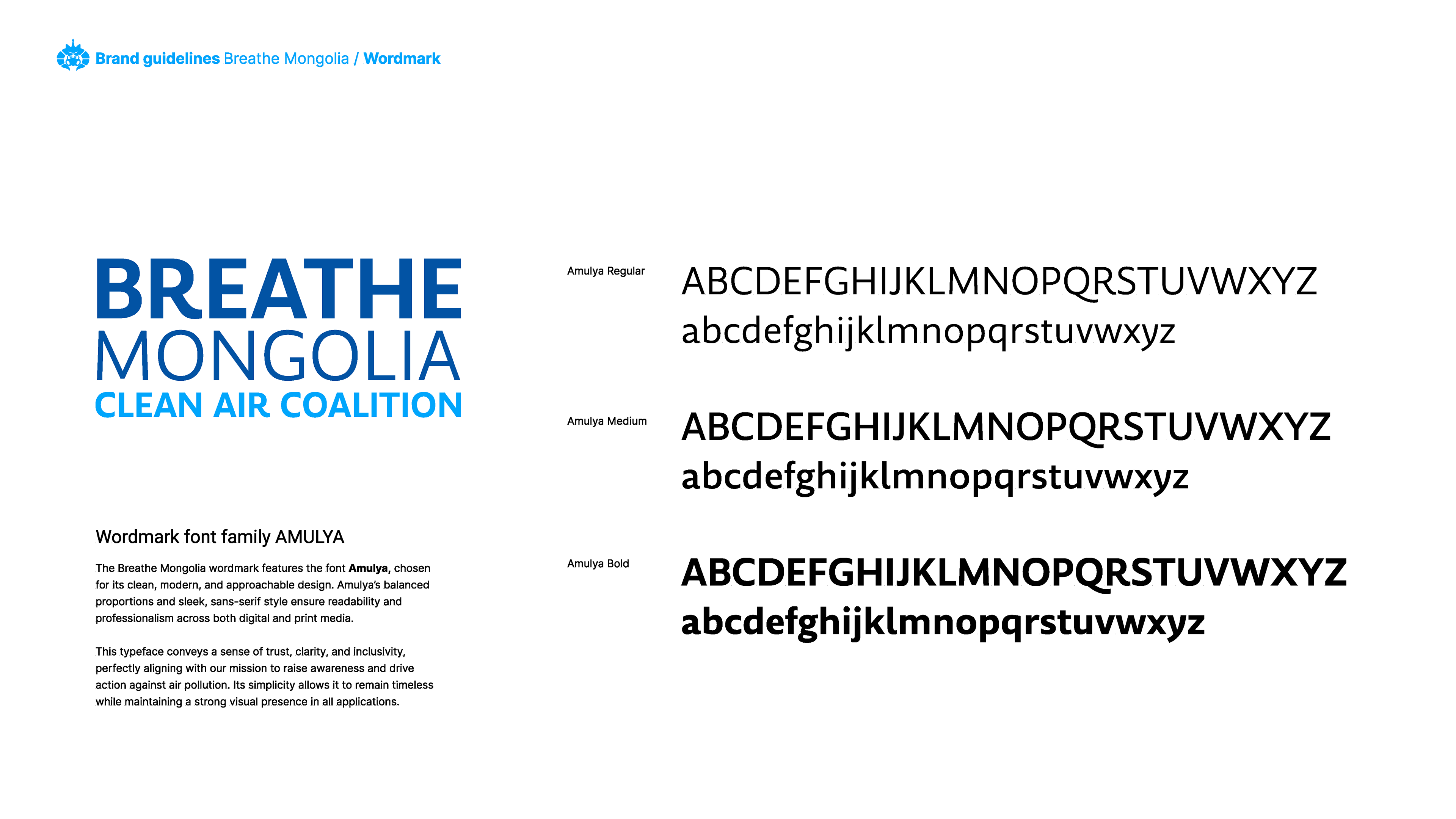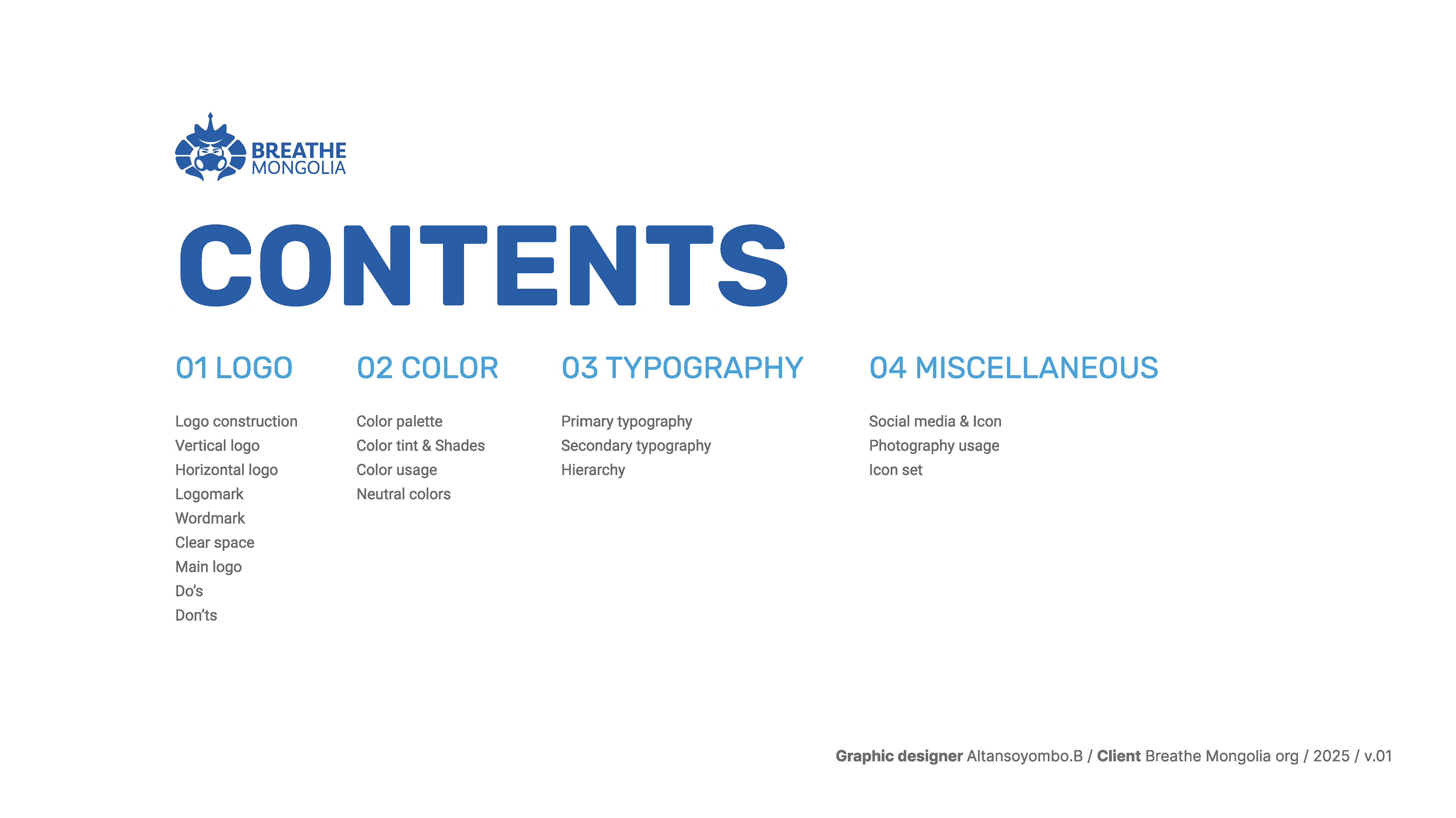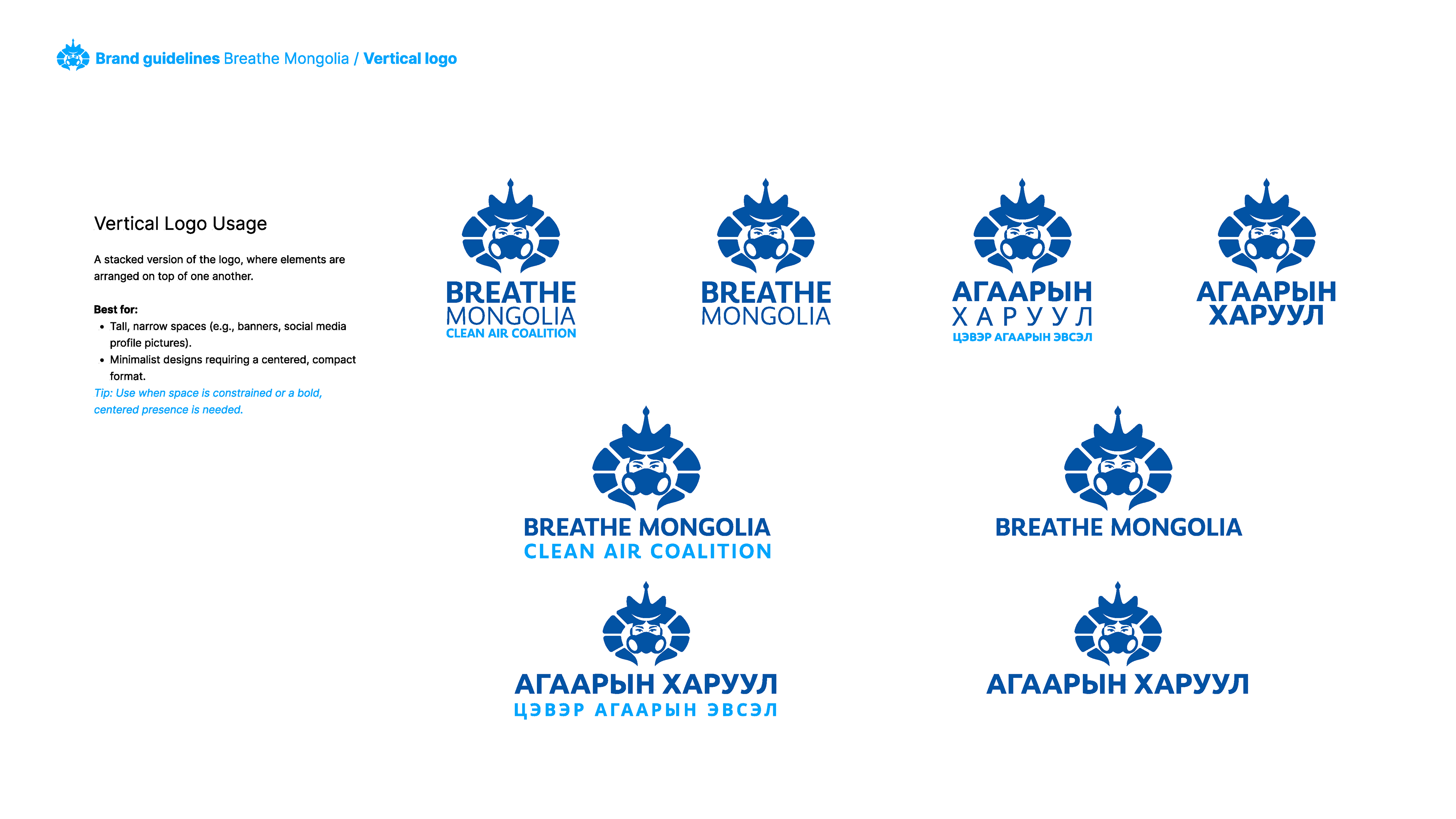 Breathe Mongolia – Clean Air Coalition is a nonprofit organization dedicated to eradicating air pollution in Mongolia through awareness, policy transformation, and community engagement. This brand guideline project focuses on establishing a strong, modern, and cohesive visual identity that reflects the organization’s mission, values, and impact.