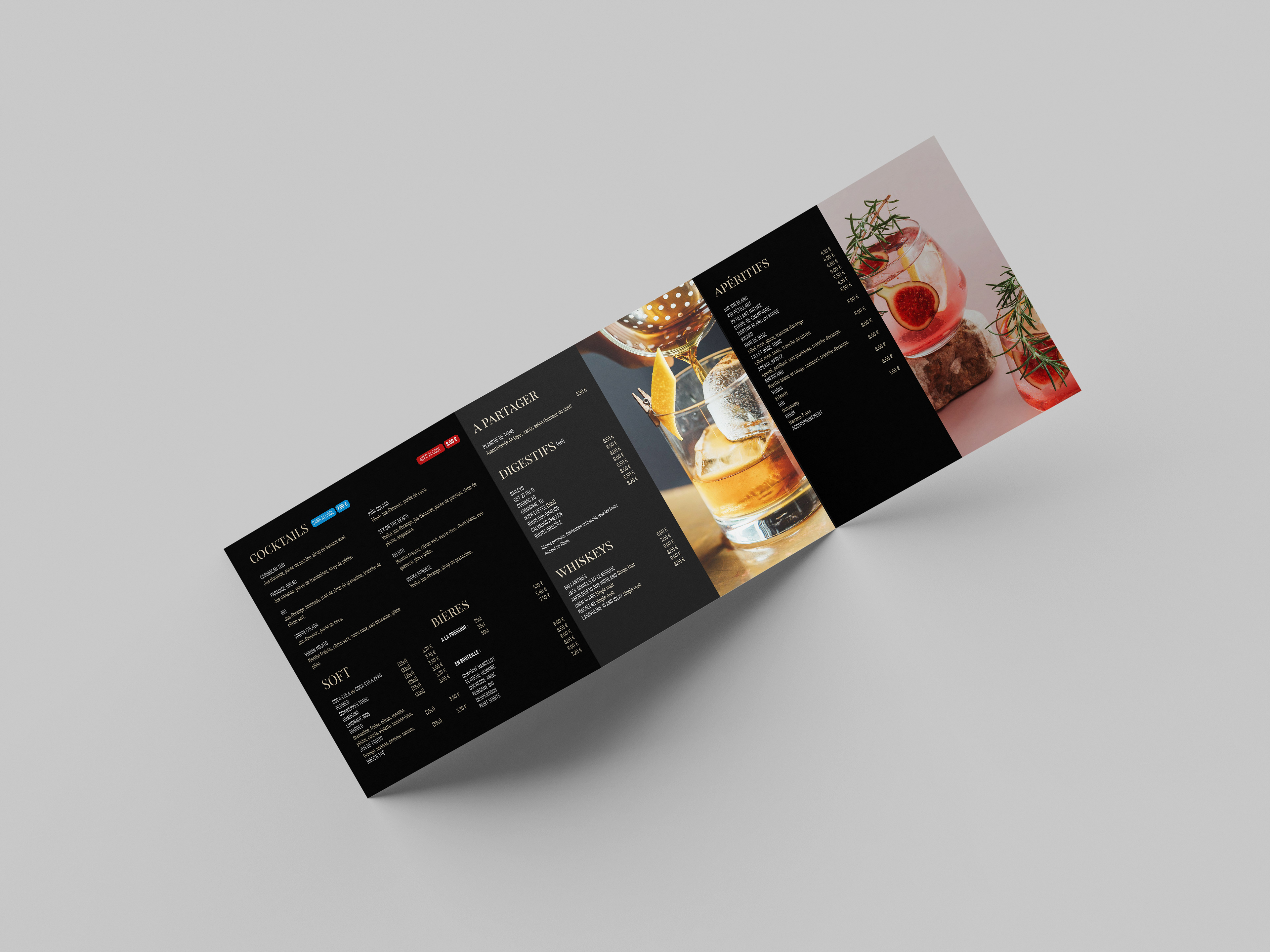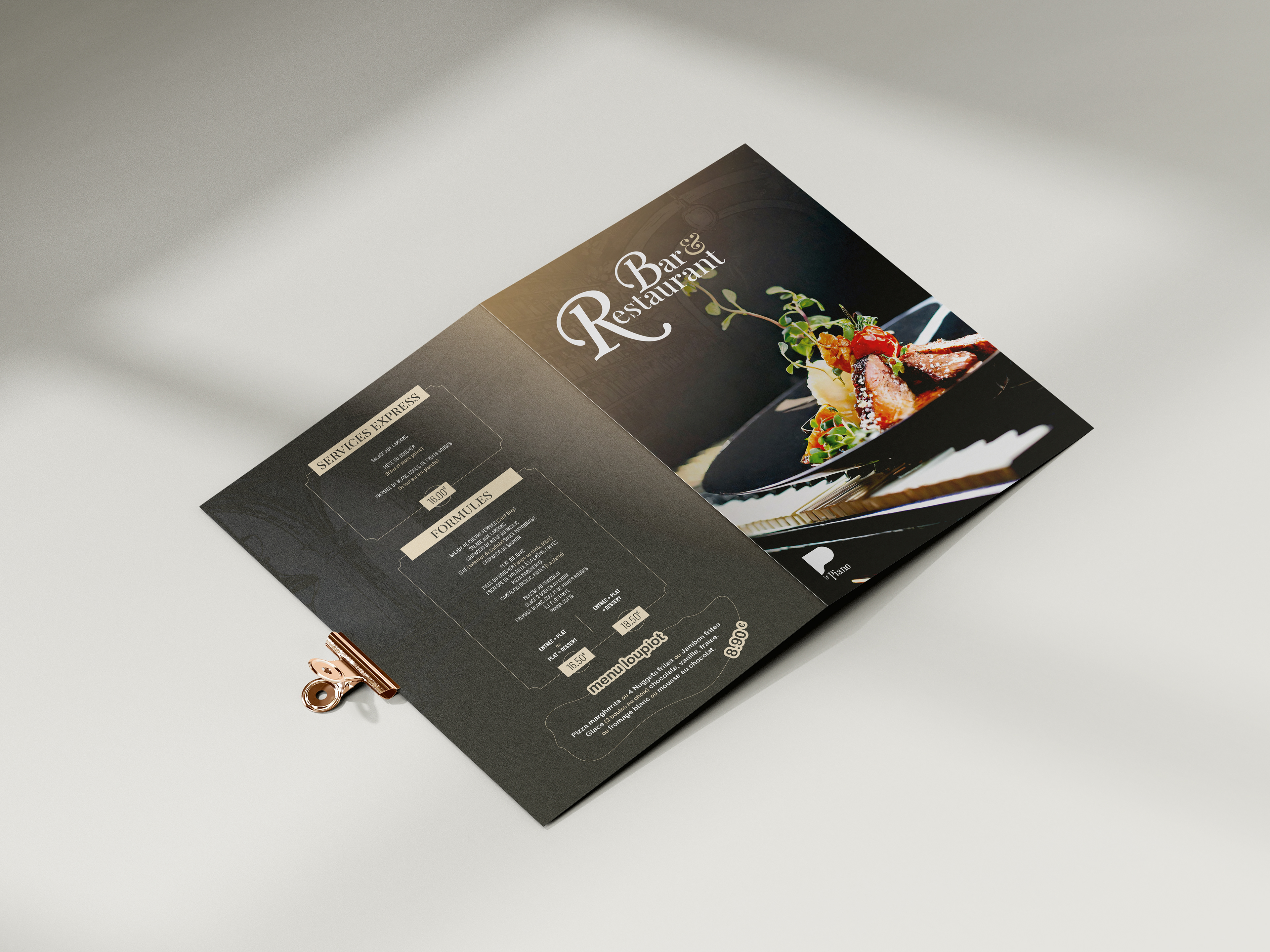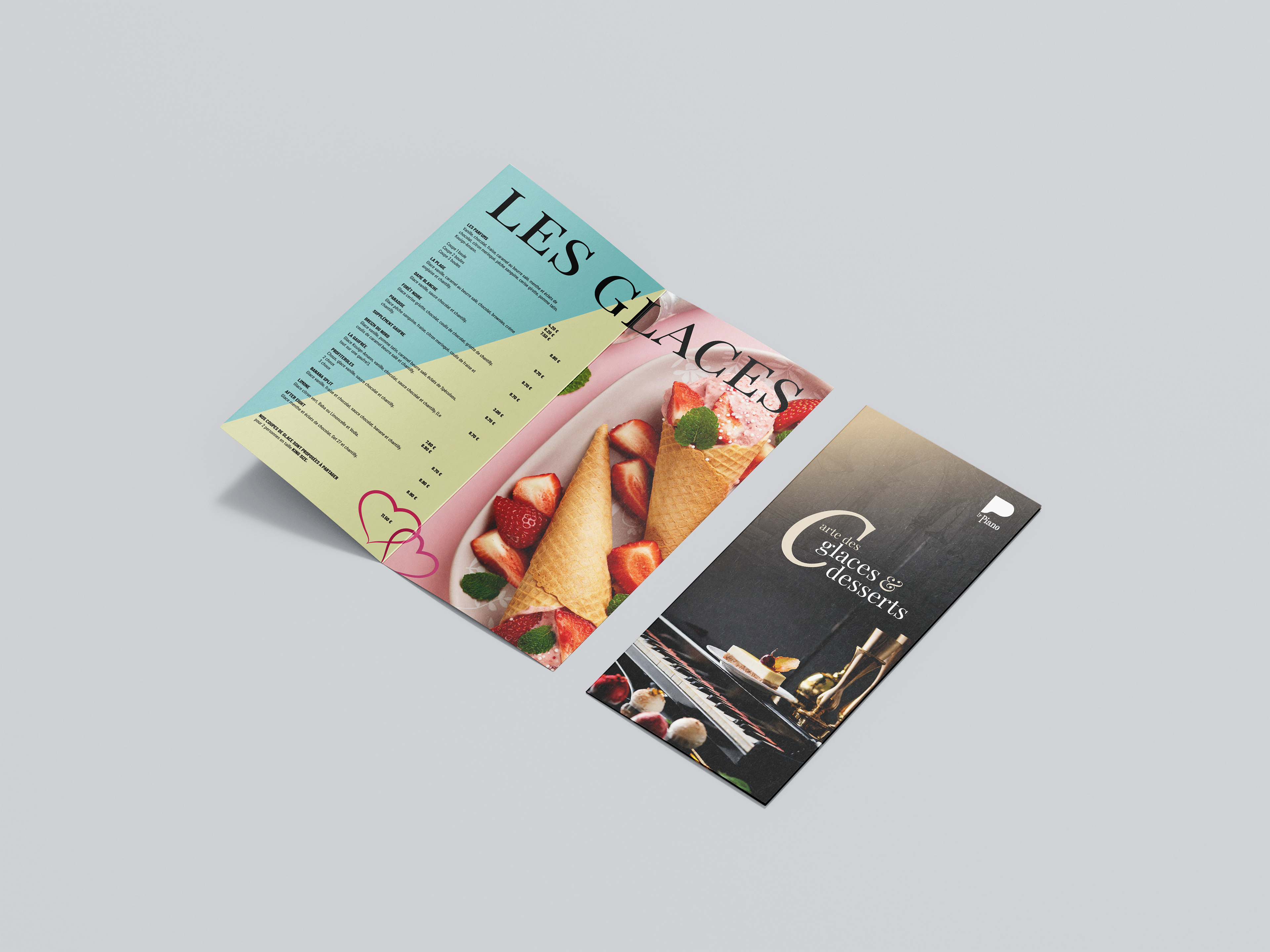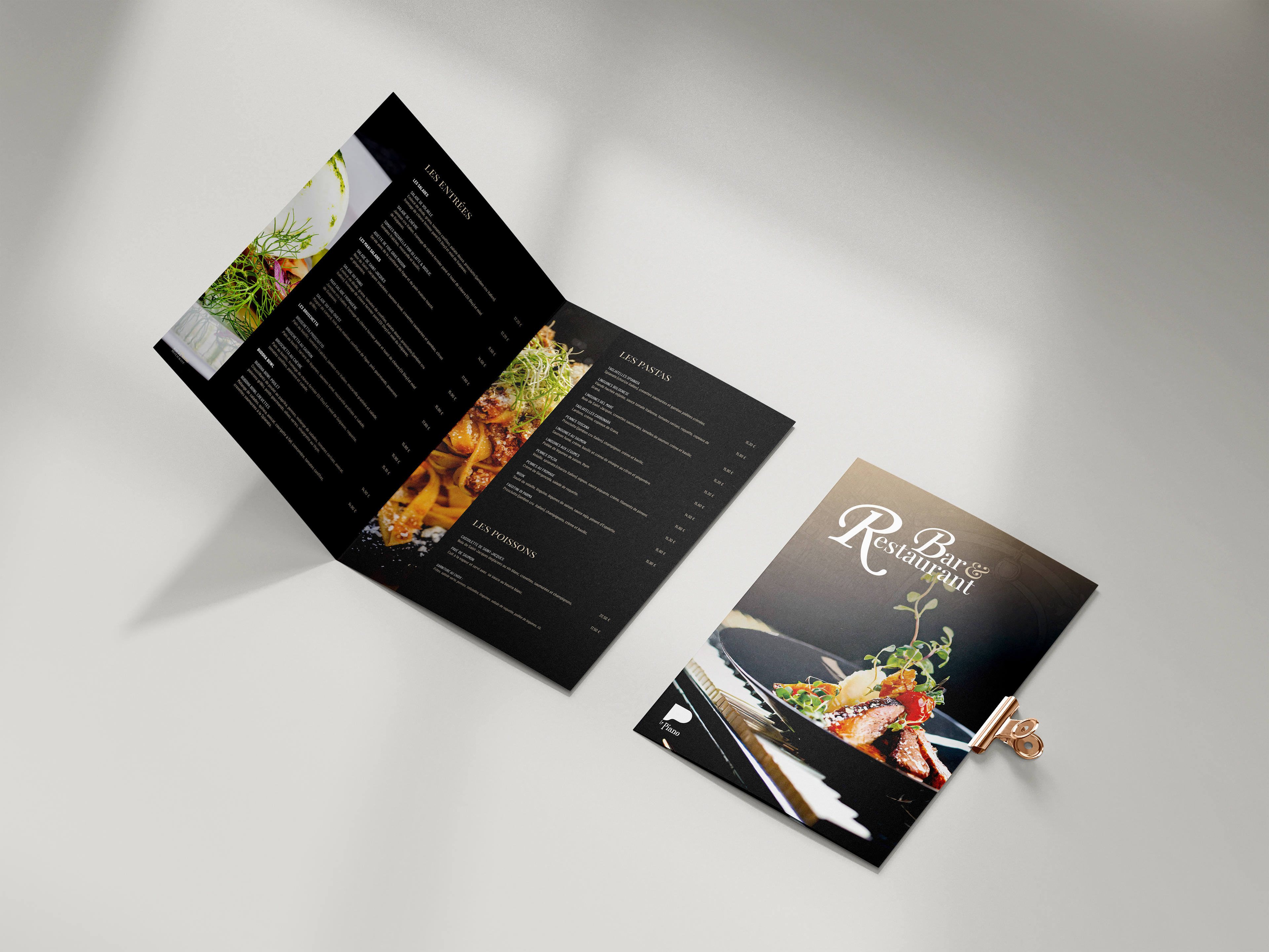 Le design de la carte de LE PIANO est une fusion harmonieuse de l'esthétique classique et contemporaine, reflétant ainsi l'atmosphère élégante et raffinée du restaurant. Des typographies élégantes aux illustrations délicates, chaque élément graphique a été soigneusement sélectionné pour créer une expérience visuelle cohérente et captivante.