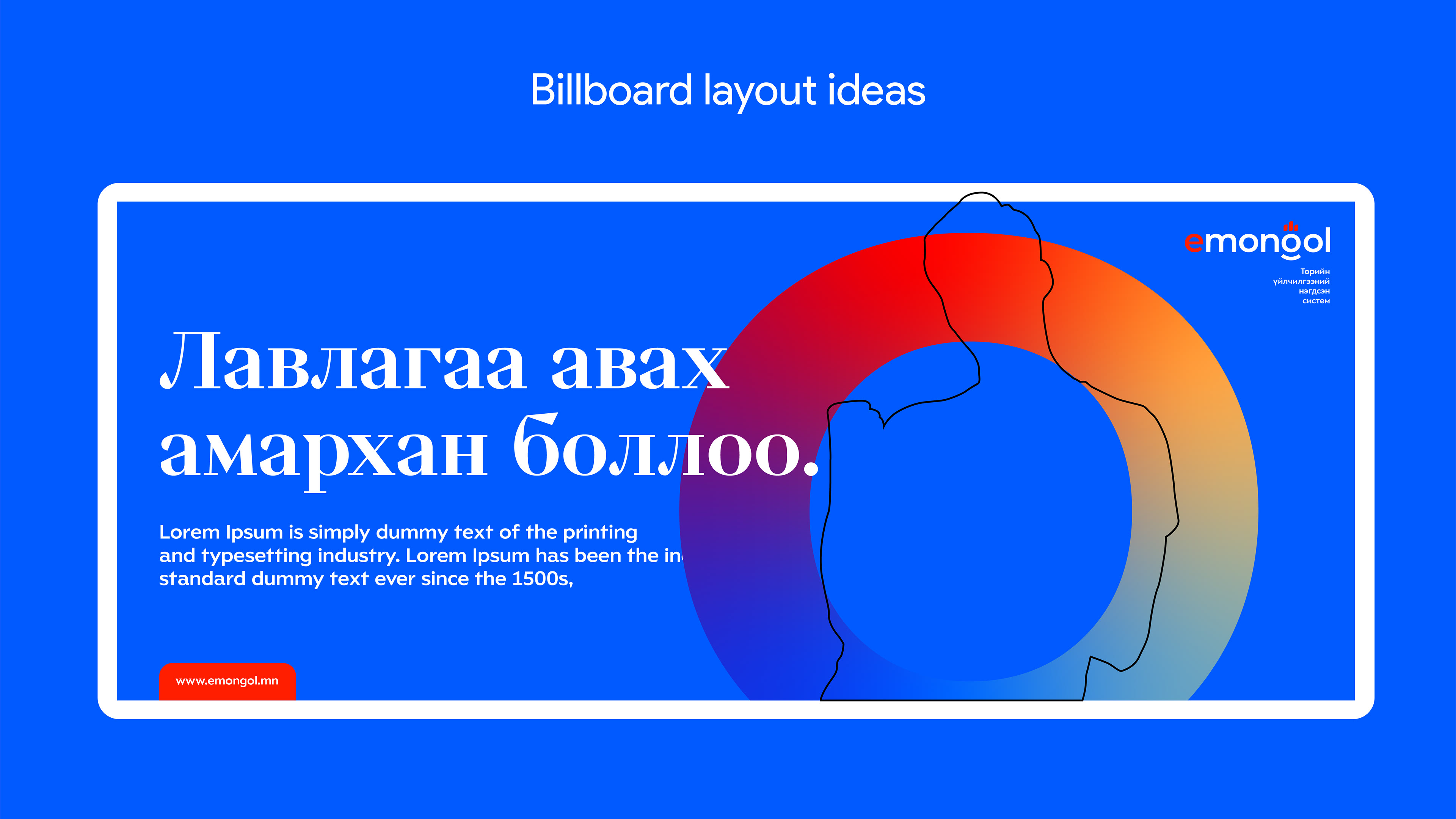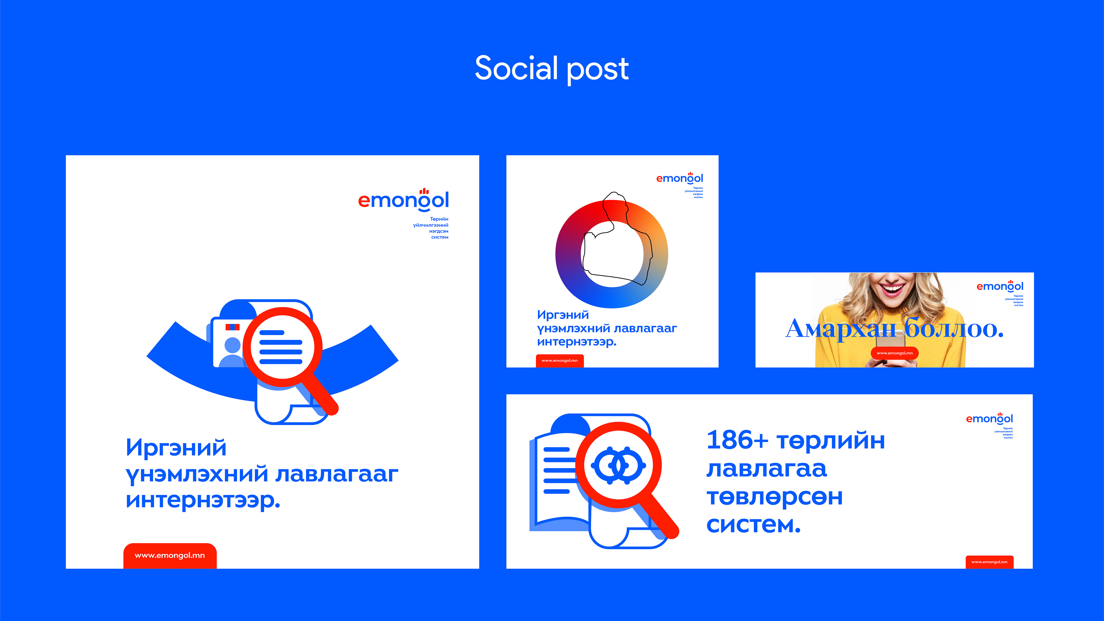 My approach focused on conveying trust, accessibility, and national pride through a modern and intuitive design system. The logo draws inspiration from Mongolia’s cultural heritage, reimagined for the digital era to symbolize progress and connectivity. The visual identity extends across digital and print touchpoints, ensuring a cohesive and user-friendly experience for millions of Mongolian citizens.